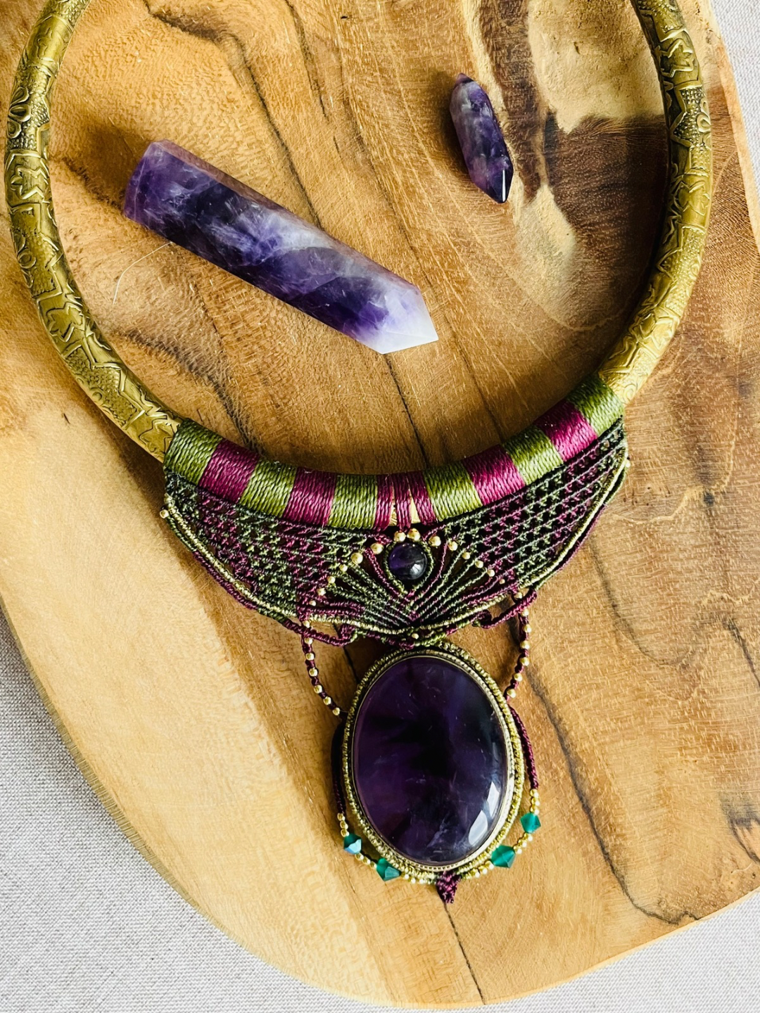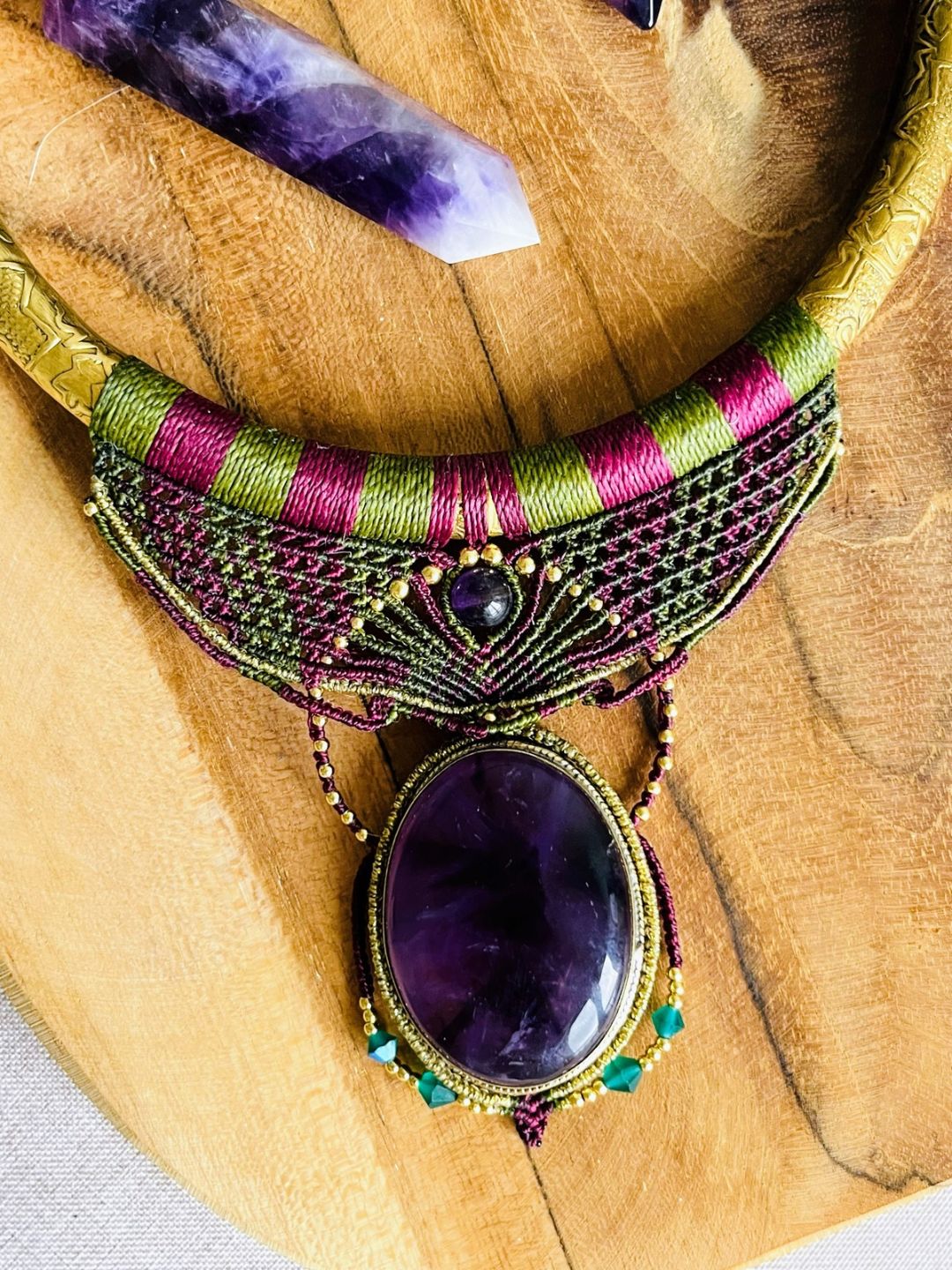 - Avec Améthyste qui facilite l'ouverture du 3e oeil, perceptions extra-sensorielles, aide à la méditation et connexion au grand Tout